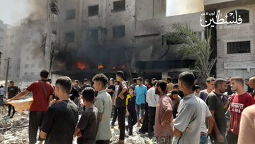 Around 12:30 pm, an Israeli airstrike targeted the Al-Shawwa residential building which also housed a center of the The Palestinian Medical Relief Society (PRMS) at Al-Samer intersection in central Gaza City.